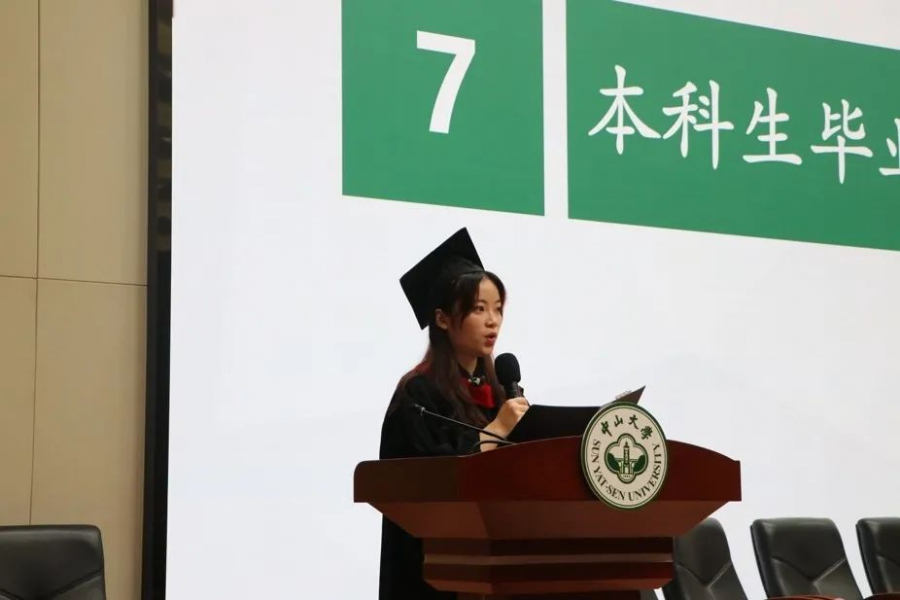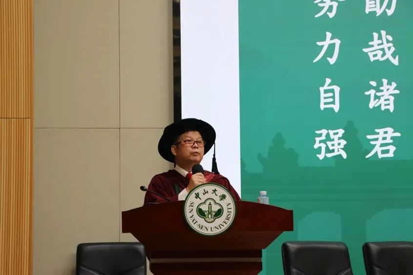 “学海汪洋,毓仁作圣。大学毕业,此其发轫……”黎伟标副院长带领毕业生重温孙中山先生的毕业训词,坚定的声音饱含对毕业生们的期待。