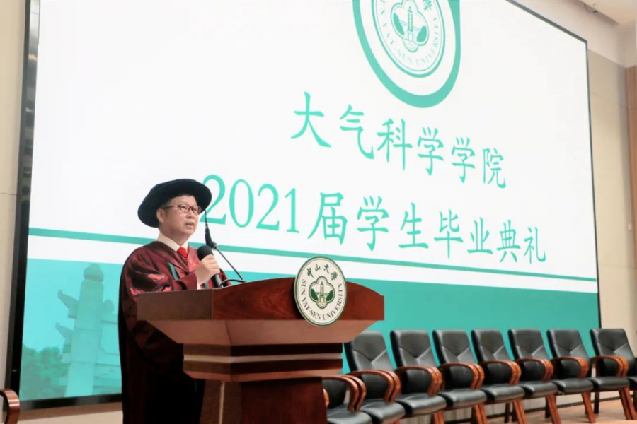6月27日下午,我院2021届学生毕业典礼在珠海校区海琴二号隆重举行。主礼教授戴永久院士、院长董文杰教授、杨崧教授、杭建教授、樊琦教授、简茂球教授、林文实教授、杜宇副教授、乔云亭副教授、李秀珍副教授,学院党委郑慧书记、余伯俊副书记,学科带头人于卫东教授、实验中心主任韩永教授,本年度“我心中的魅力教师”获得者、青年教师辅导员、大气英才班班主任、学院办公室的老师们以及2021届全体毕业生出席典礼。典礼由黎伟标副院长主持。