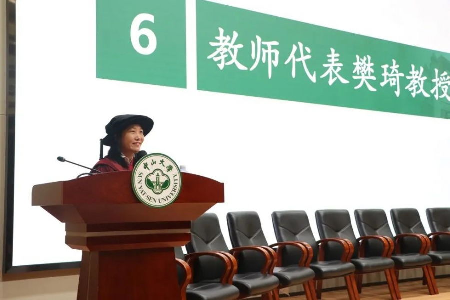 教诲如春风,师恩似海深。教师代表樊琦教授在发言中表示,学院的一草一木,一楼一人,都将是同学们脑海里永远平淡却又炽热的青春记忆。她鼓励同学们释放青春活力,以自强的姿态开启下一段大气征程。
