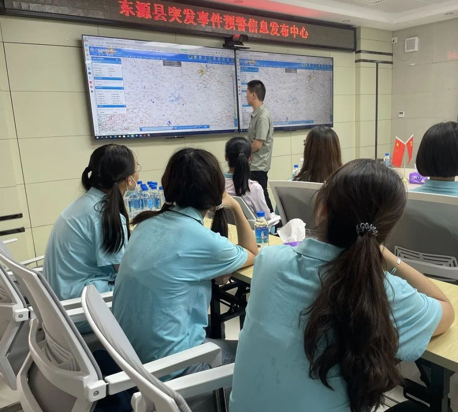 在与东源县气象局的工作人员交流学习过程中,大气学子们运用专业知识积极提问,收获良多。