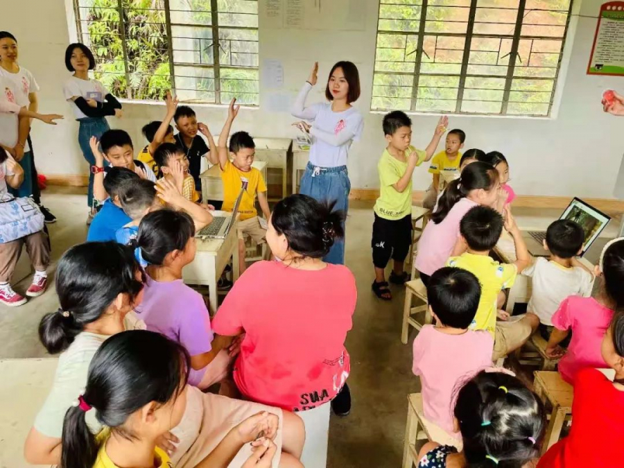 22日上午,“三下乡”队员们和小朋友们共同举办了一场精彩难忘的文艺汇演。生动有趣的节目,给孩子们带来了欢声笑语,同时传递了满满的正能量,激发了孩子们的爱国热情。