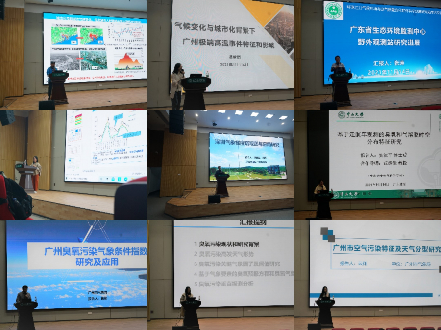 杭建教授、广州市气象局潘蔚娟教授级高工、广东省生态环境监测中心张涛高工、广州市气象局高晓荣高工、深圳市气象局张春生高工、太阳成集团tyc9728贺沅平博士后、广州市气象局黄俊高工、佛山市气象局陈辰工程师、广州市气象局云翔工程师分别进行学术报告。