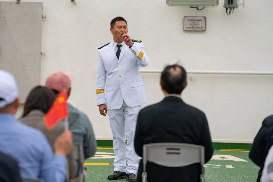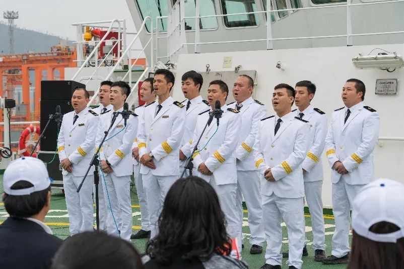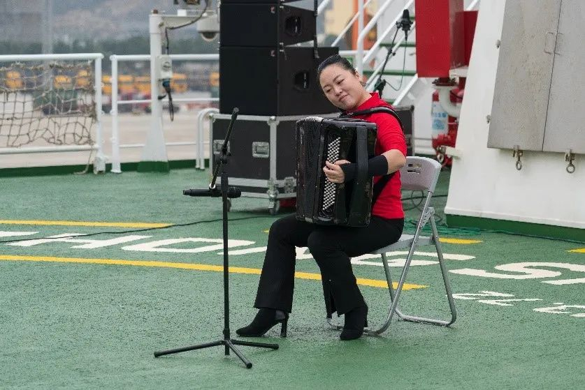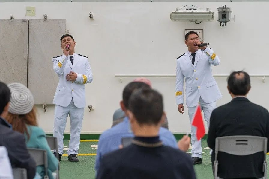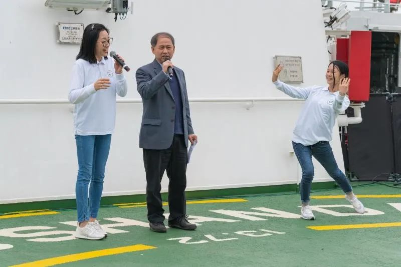 参观过程中,来宾们不时驻足,与“中山大学”号科考人员及船员深入交流,相互分享学科前沿动态,共同展望未来科考前景。参观结束后,全体活动参与人员在科考船停机坪甲板集中,欣赏精彩的节目表演。