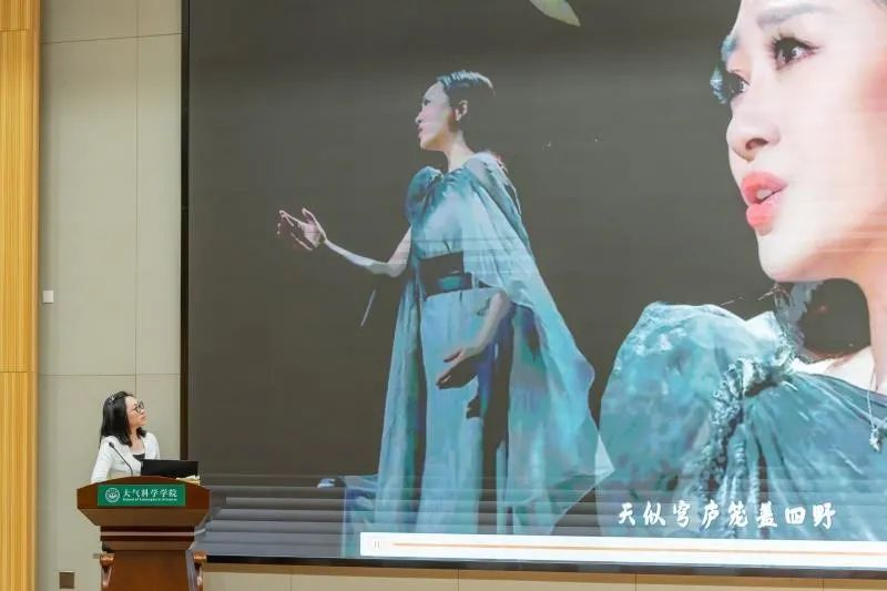在两场精彩的科学报告之后,由中山大学艺术学院金婷婷院长进行以“从诗经出发——重访诗乐同源的中国文艺传统”为主题的报告。金院长在报告中详细介绍了以《诗经》为代表的中国文艺传统知识,并播放了一系列由艺术学院完成的音乐作品,为大家带来了一场华丽的视听盛宴。