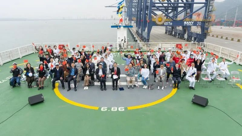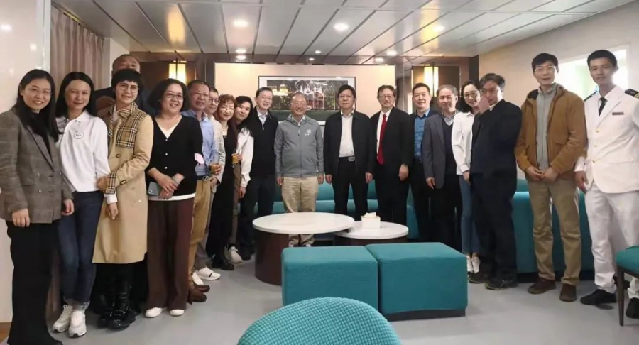 嘉宾在“中山大学”号海洋综合科考实习船上合影