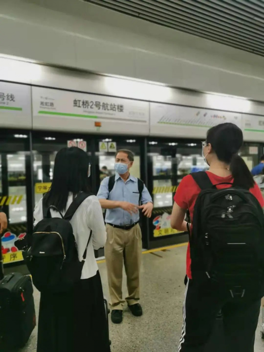 杨崧教授在等地铁的间隙指导学生