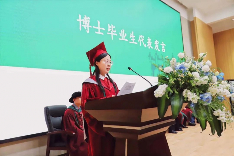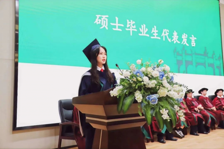 随后,分别是本科毕业生代表梁凯昕、硕士毕业生代表杨霞和博士毕业生代表郑艺发言,讲述了在中大求学生涯的收获,表达了对学院老师的感恩、对毕业生的祝福。