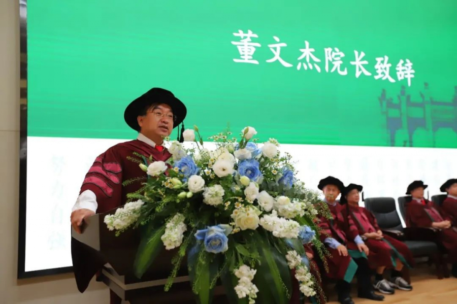 董文杰院长在毕业致辞里向全体毕业生送上了热烈祝贺和深情祝福,借用习近平总书记“我将无我、不负人民”和孙中山先生“青年要立志做大事、不要做大官”两句话,并结合具体例子阐述见解,希望同学们始终坚持砥砺意志、淬炼品格,不断修炼自身,时刻谨记自己的职责,踏踏实实做好工作,为社会和国家做出自己应有的贡献。