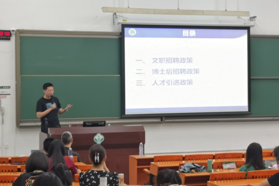 随后,李百洋老师介绍了学院人才引进策略。李老师分别从文职招聘政策、博士后招聘政策、人才引进政策等三个方面,介绍了研究生待遇、研究生助学金、脱产进站博士后年收入、博士毕业应聘国科大文职人员待遇等内容,为同学们详细介绍了学院优厚的人才引进待遇。