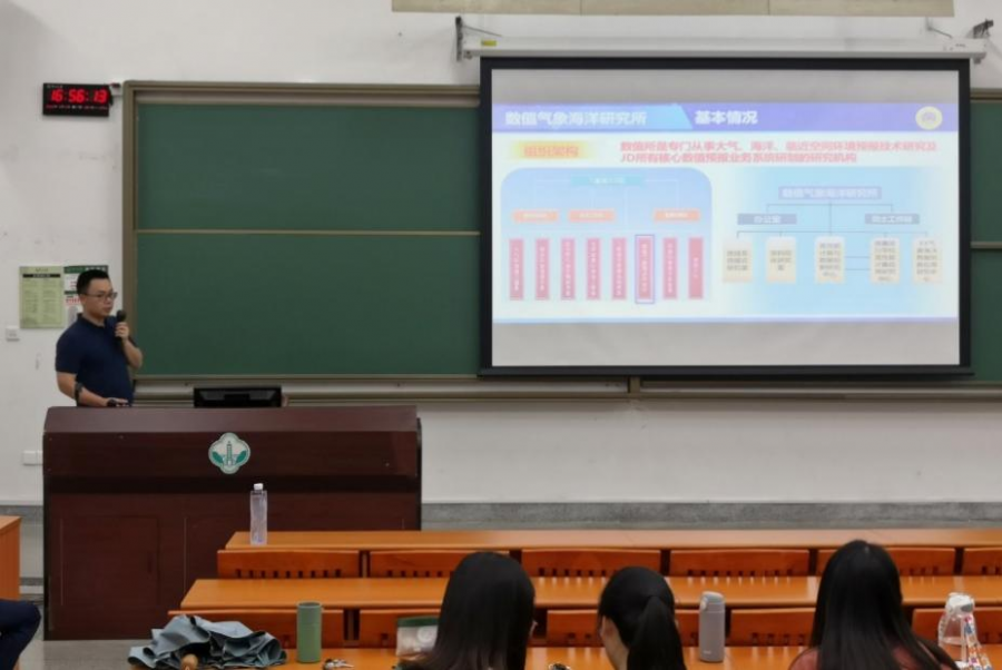 首先,施伟来老师从国防科大气象海洋学院的基本情况、研究生教育情况、招生政策等方面介绍了气象海洋学院。他表示,气象海洋学院2023年大幅增加了无军籍硕士、博士招生指标,鼓励有志青年积极报考。董文杰院长在施老师宣讲结束后,进行了分享讲话,鼓励同学们怀揣家国情怀,积极投身国家国防科技事业。