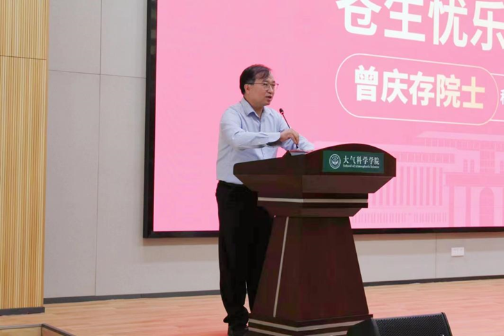 讲座伊始,董文杰院长代表学院对曾院士的到来表示热烈欢迎和衷心感谢,并分享了曾先生在中国科学院大气物理研究所授课时令人印象深刻的情节。董院长指出,学院在培养学生专业知识技能的同时,注重学生的思想引领工作,致力于为党和国家培养具有家国情怀,符合祖国建设需求的创新型人才,希望同学们通过曾院士的讲座能够更好领悟科学家精神,肩负起发展大气学科与气象事业的使命。