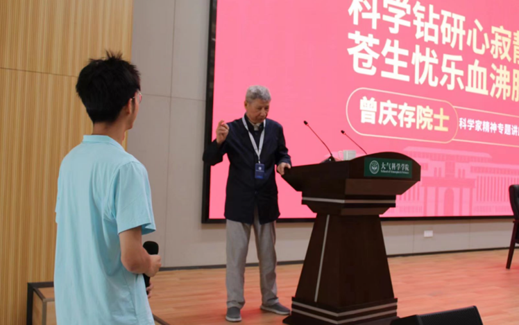 随后,曾院士与同学们进行互动交流,耐心详细地解答了同学们提出的疑问与困惑。曾院士教诲同学们,要打好数理基础,拓宽视野;要勇于挑战气象领域新的难题,结合学科特色用好科研工具;要在气象领域深刻钻研,敢于承认未知的地方,边学边做;要为国家排忧解难,实现自己的人生价值。