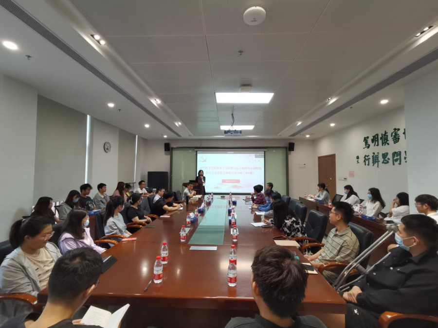 5月9日上午,我院党委开展学习贯彻习近平新时代中国特色社会主义思想主题教育专题读书班第九次集中学习,环境科学与工程学院陈绍晴教授作“‘双碳’目标下的资源环境协同管理——以污水治理减碳研究为例”主题辅导报告,党委书记郑慧主持会议,党委读书班全体成员、研究生第四、第五党支部党员代表共同参加了本次研学。