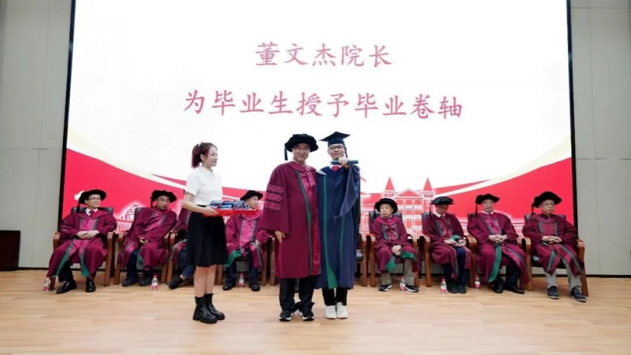 董文杰院长在毕业致辞中向全体毕业生送上热烈祝贺和深情祝福,教诲大家要把握住人生中最热烈的青春年华,勿忘校训,无论身处何方、身任何职,都要不忘初心、潜心砥砺、淬炼品格,把个人前途与国家重大需求和社会需要紧密结合起来,把握求知主动、积极创新突破,争做强国建设、民族复兴的时代青年。