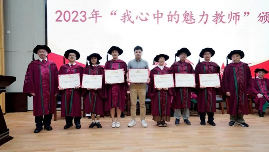 游顺勇宣读学院关于表彰2023年“我心中的魅力教师”获得者的决定,杨崧教授、刘骥平教授为获奖教师颁奖。