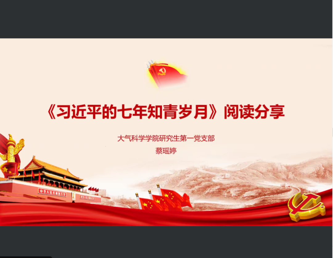 最后,支部开展了“诵读红色经典,深化主题教育”——第三期红色经典分享会,由支部成员蔡瑶婷同志和付东同志依次介绍书籍《习近平的七年知青岁月》和革命历史题材电视剧《觉醒年代》。蔡瑶婷同志带领大家一起学习阅读了书中的“近平干活跟咱农村人一样”、“近平在困境中实现了精神升华”等片段。她表示,通过阅读这本书籍,深刻学习到习近平总书记强烈的使命感、遇到困难不轻易言弃、勤读书善思考等精神,在今后的学习工作生活中也将努力学习这种精神,坚持做到知行合一。此外,通过带领大家观看《觉醒年代》的精彩片段,付东同志向大家展示了李大钊同志作为一名优秀的无产阶级革命家,为党的事业艰苦奋斗的一生,她呼吁,我们要以李大钊同志为榜样,始终保持奋斗精神,积极做民族伟大复兴的实践者,为民族复兴奋斗终身!