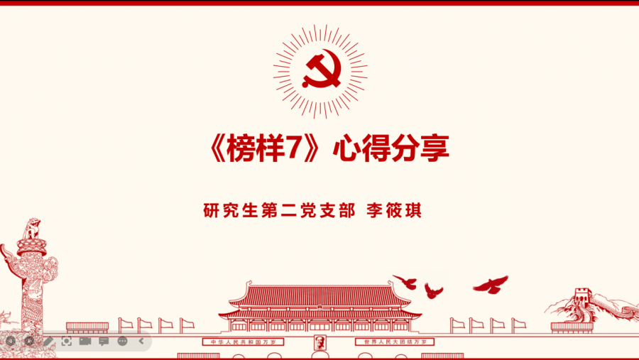 最后,支部开展了以“汲取榜样精神,践悟初心使命”为主题的《榜样7》专题节目观后感分享交流会。李筱琪、齐木荣和朱柳迪同志介绍了《榜样7》中给自己留下深刻印象的精彩片段和感悟。李筱琪同志表示,王亚平、王传喜等榜样的先进故事深深激励了自己,节目通过典型事迹展示、现场访谈、重温入党誓词等形式,生动形象地展现了中国共产党人坚定信念、践行宗旨、拼搏奉献、廉洁奉公的高尚品质和精神风范,彰显了基层党组织的堡垒作用和党员的先锋模范作用,深刻诠释了中国共产党人不忘初心、牢记使命的执着坚守。齐木荣同志表示,《榜样7》节目讲述了8位党的二十大代表的先进事迹,让自己深刻体会到了即使处在不同年龄阶段和不同职业岗位上,中国共产党员们拥有着共同的坚定信念,高尚的品质,锲而不舍的精神,和舍小家为大家的情怀。朱柳迪同志表示,蓝图恢弘,号角激越,前程远大,我们是新时代征程的推进者,在新的赶考路上,我们应致敬榜样,学习榜样,踔厉奋发,矢志不渝,笃行不怠。