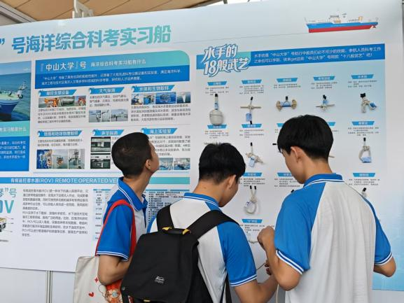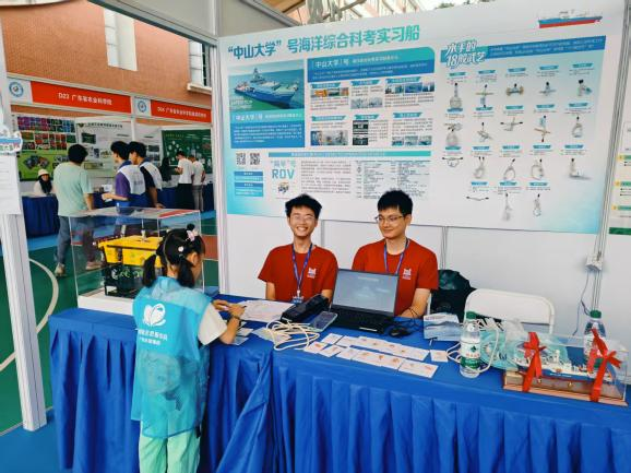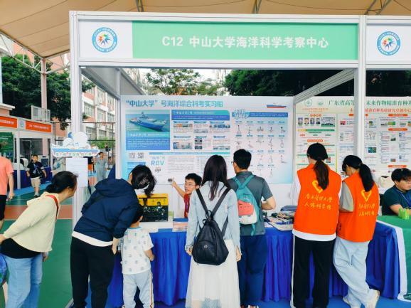 2025年5月24至25日广州科技活动周开幕式暨第九届科学嘉年华活动在广州市第一中学高中部举行,中山大学海洋科学考察中心作为参展单位以创新赋能,产业升级为主题进行海洋科普,深受同学和市民的喜欢。