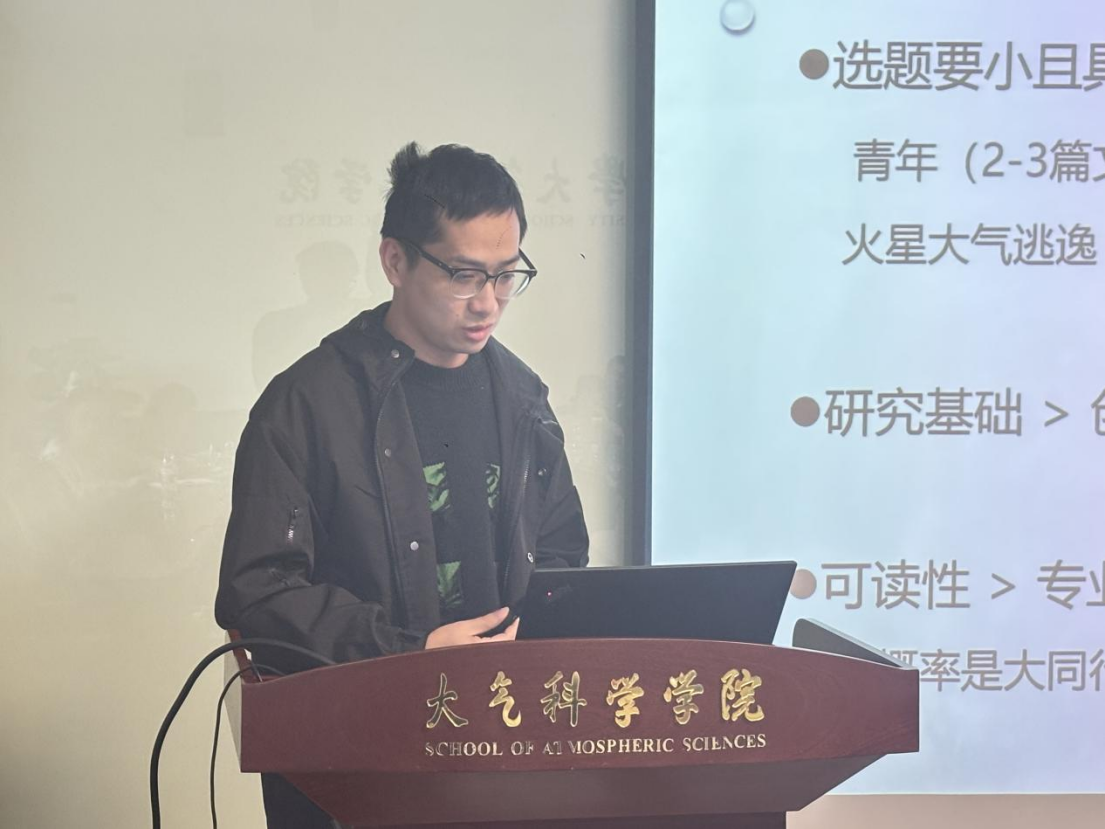 科研秘书林柏富介绍了学院2025年度国家自然科学基金的申请和立项情况,并传达了学校科研院的指导经验。随后,刘骥平结合自身科研积累与评审经验,对基金申请书各板块撰写要点进行了细致讲解。杭建分享了个人科研创新与学术品牌打造的成长故事,并提出实用的“三三制”撰写原则。顾浩、卢骁、陈肖睿结合自身申请经历,分享了自己基金申报的经验。