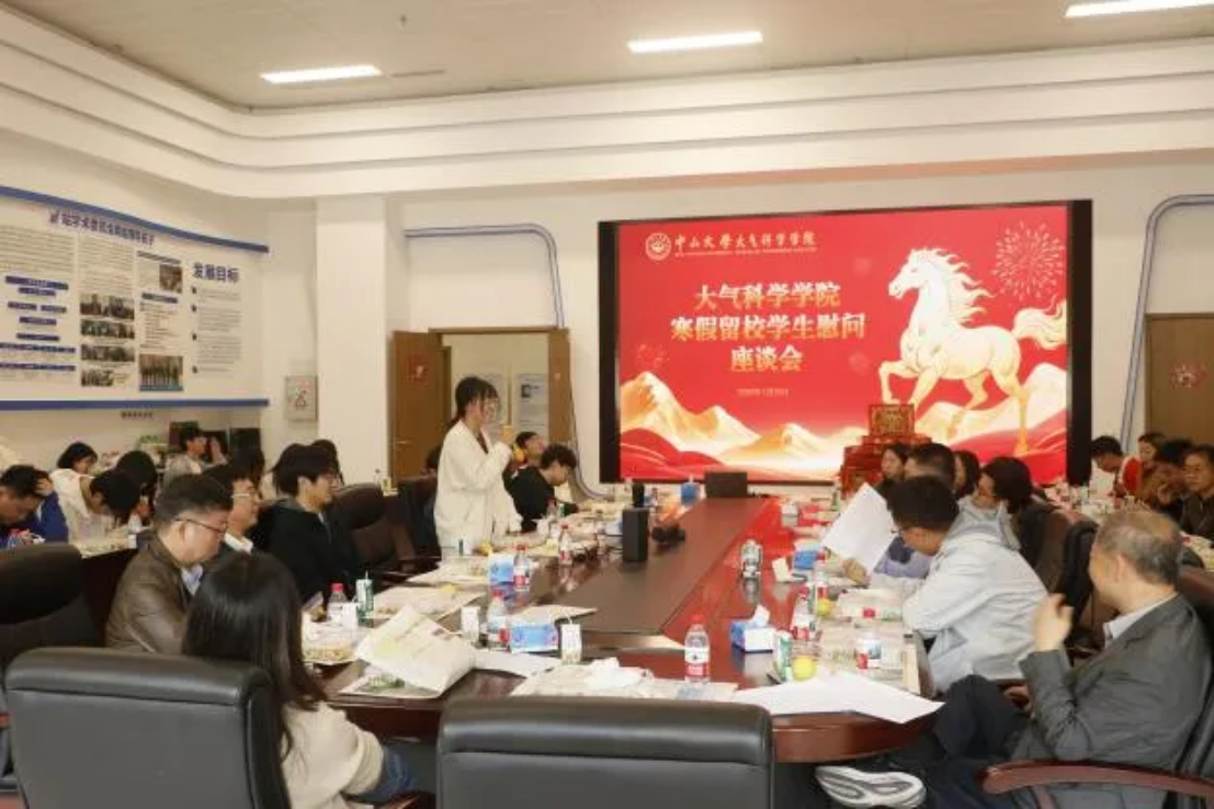 岁序更替,年味渐浓。为切实关心关爱留校同学,让大家在异乡感受到家的温暖与学院的关怀,1月29日中午,太阳成集团tyc9728“情暖大气,共话新春”2026 年寒假留校学生慰问座谈会在海琴2号A148会议室温馨举行。我院院长董文杰教授、党委书记郑慧、杨崧教授、副院长黎伟标教授、党委副书记游顺勇、崔廷伟教授、袁乃明教授、辅导员林安然与留校学生齐聚一堂,畅聊心声、共迎新春。