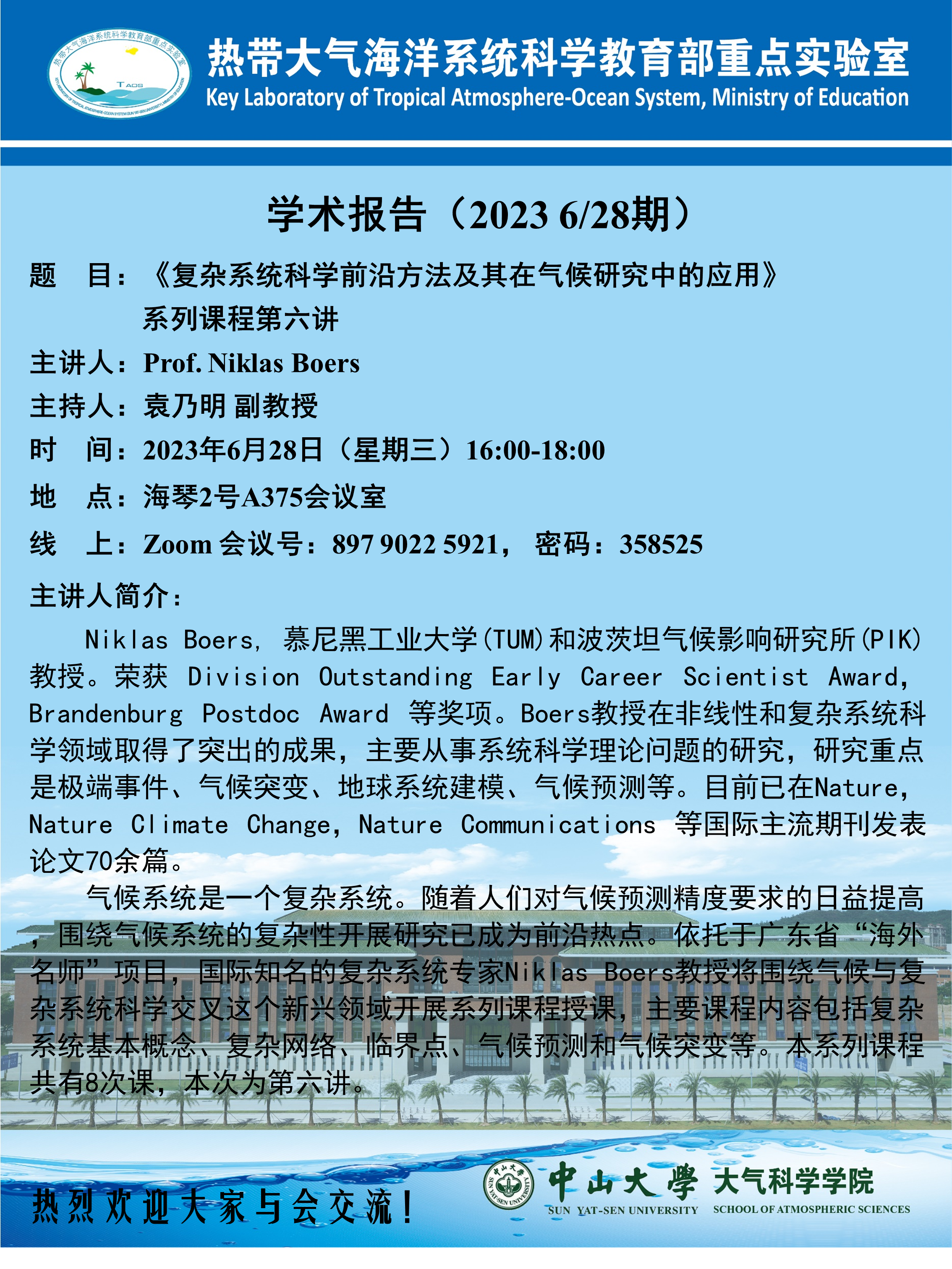 【学术预告】(2023年第31讲)《复杂系统科学前沿方法及其在气候研究中的应用》系列课程第六讲