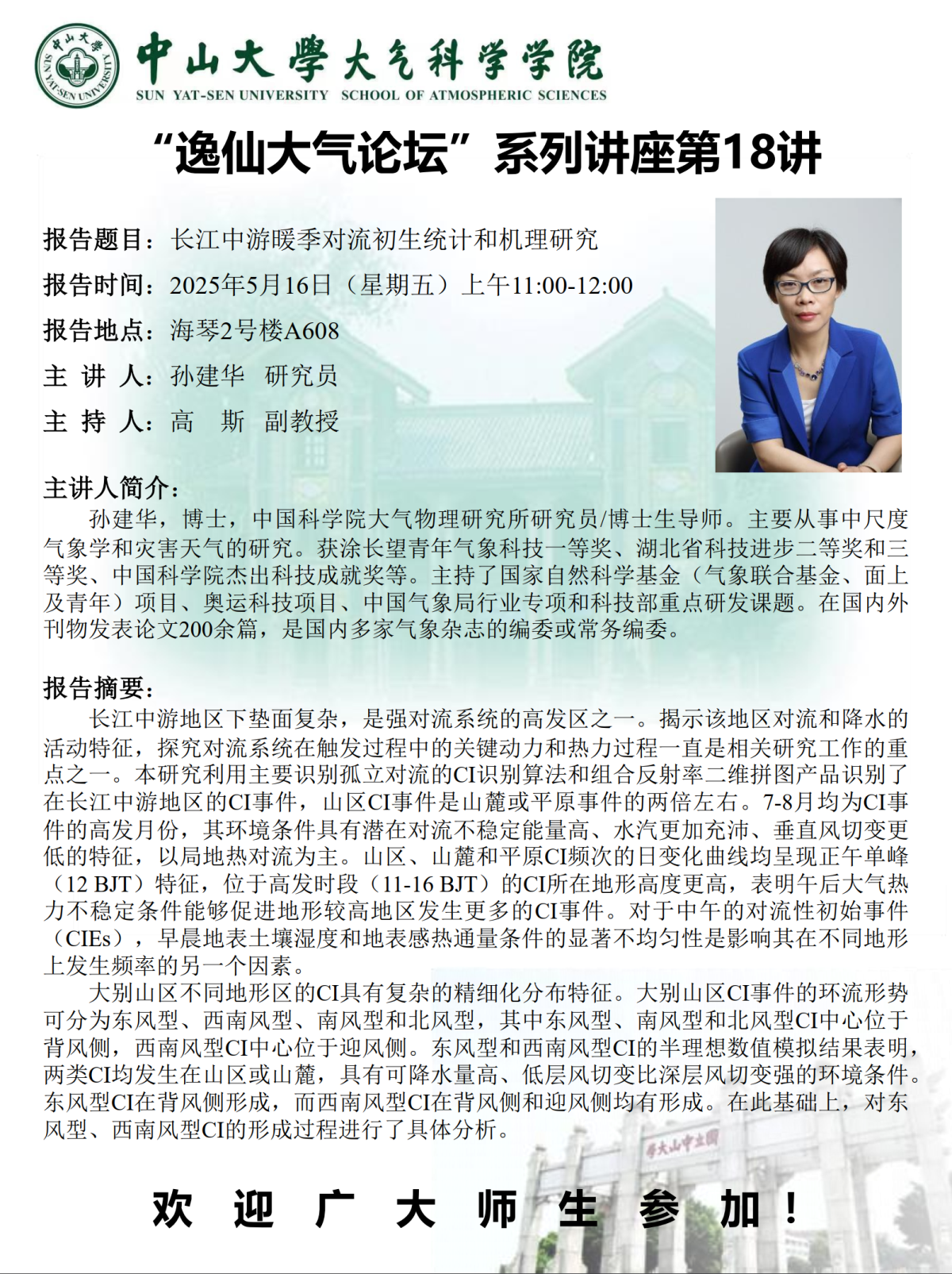 【学术预告】(2025年“逸仙大气论坛”系列讲座第18讲)长江中游暖季对流初生统计和机理研究
