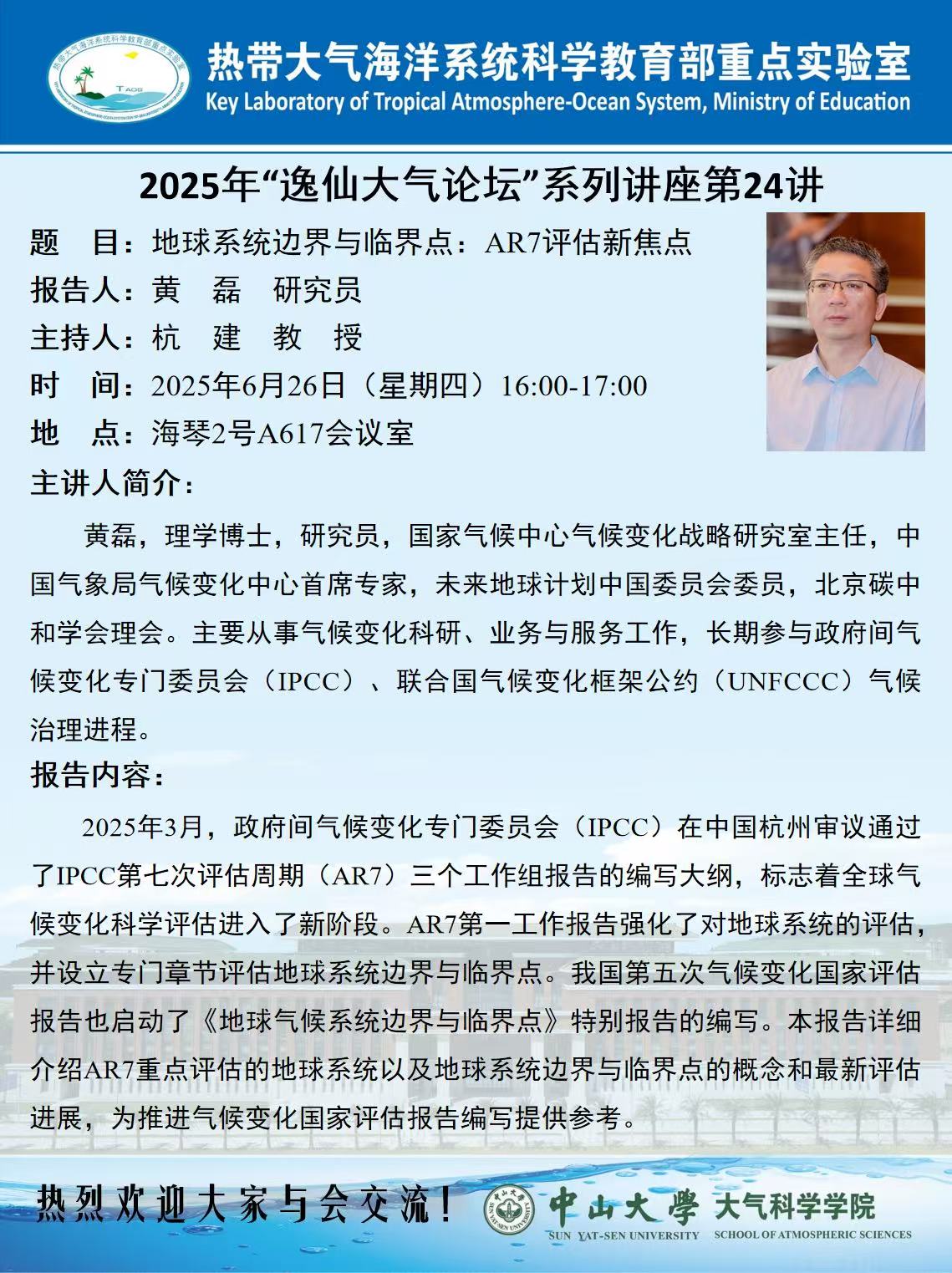 【学术预告】(2025年“逸仙大气论坛”系列讲座第24讲)地球系统边界与临界点:AR7评估新焦点