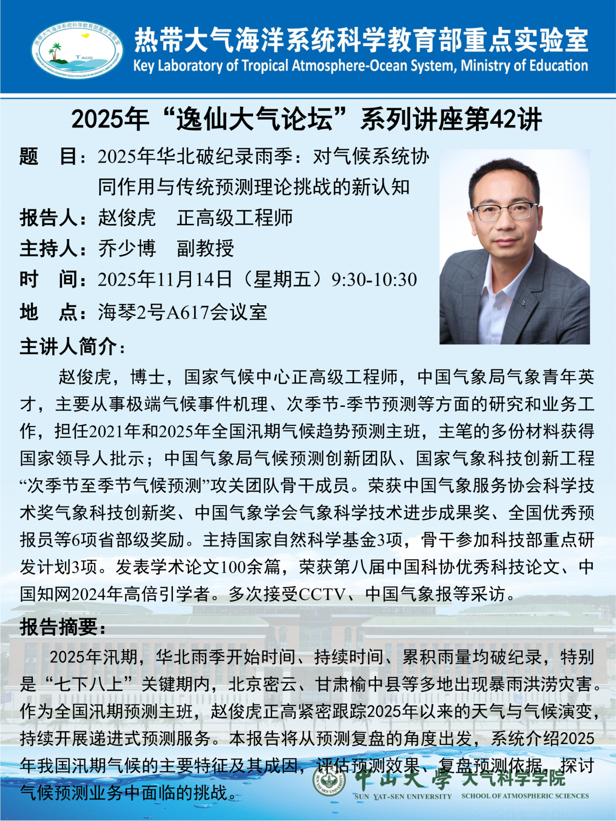 【学术预告】(2025年“逸仙大气论坛”系列讲座第42讲)2025年华北破纪录雨季:对气候系统协同作用与传统预测理论挑战的新认知