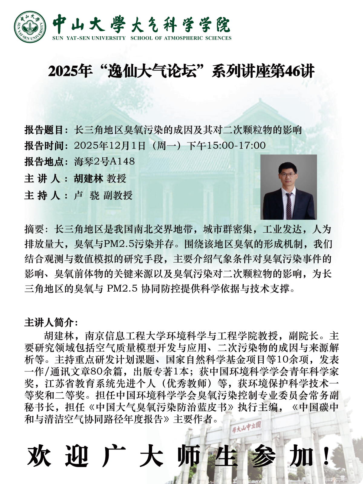 【学术预告】(2025年“逸仙大气论坛”系列讲座第46讲)长三角地区臭氧污染的成因及其对二次颗粒物的影响