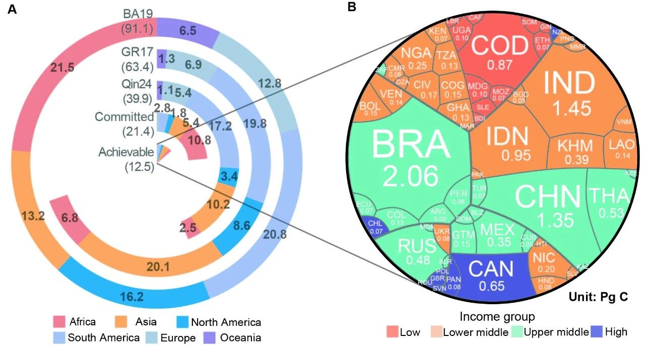 “各国的植树造林承诺与土地的潜力存在极大的错位:有土地潜力的国家所做出的承诺相对较少,而承诺较多的国家,尤其是低收入国家,却缺少足够的土地和其他资源来支撑其造林意愿。”覃章才说,“我们提出了一个未来全球植树造林的奥林匹克目标——更快、更高、更强、更团结。希望为全球气候变化合作,厘清各国森林资源的不对称和南北国家的权责失衡等问题提供一定科学参考。