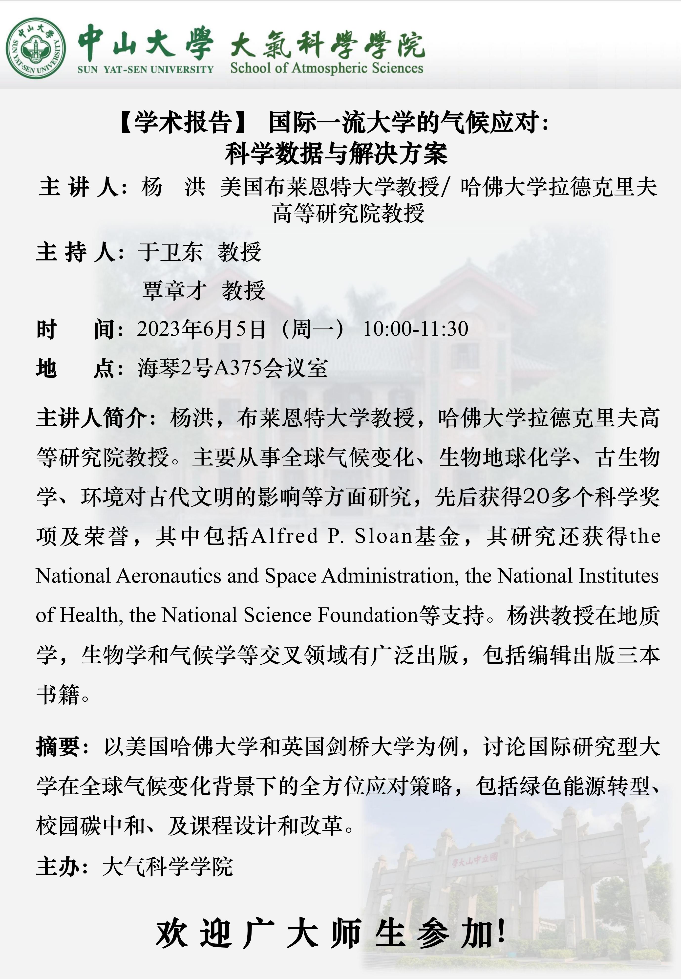 【学术预告】(2023年第21讲)国际一流大学的气候应对:科学数据与解决方案