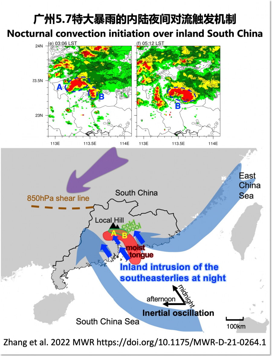 2022.07 博士生张思嘉在MWR发表论文:暖区暴雨的夜间对流触发(广州5.7破纪录暴雨的多尺度机制)